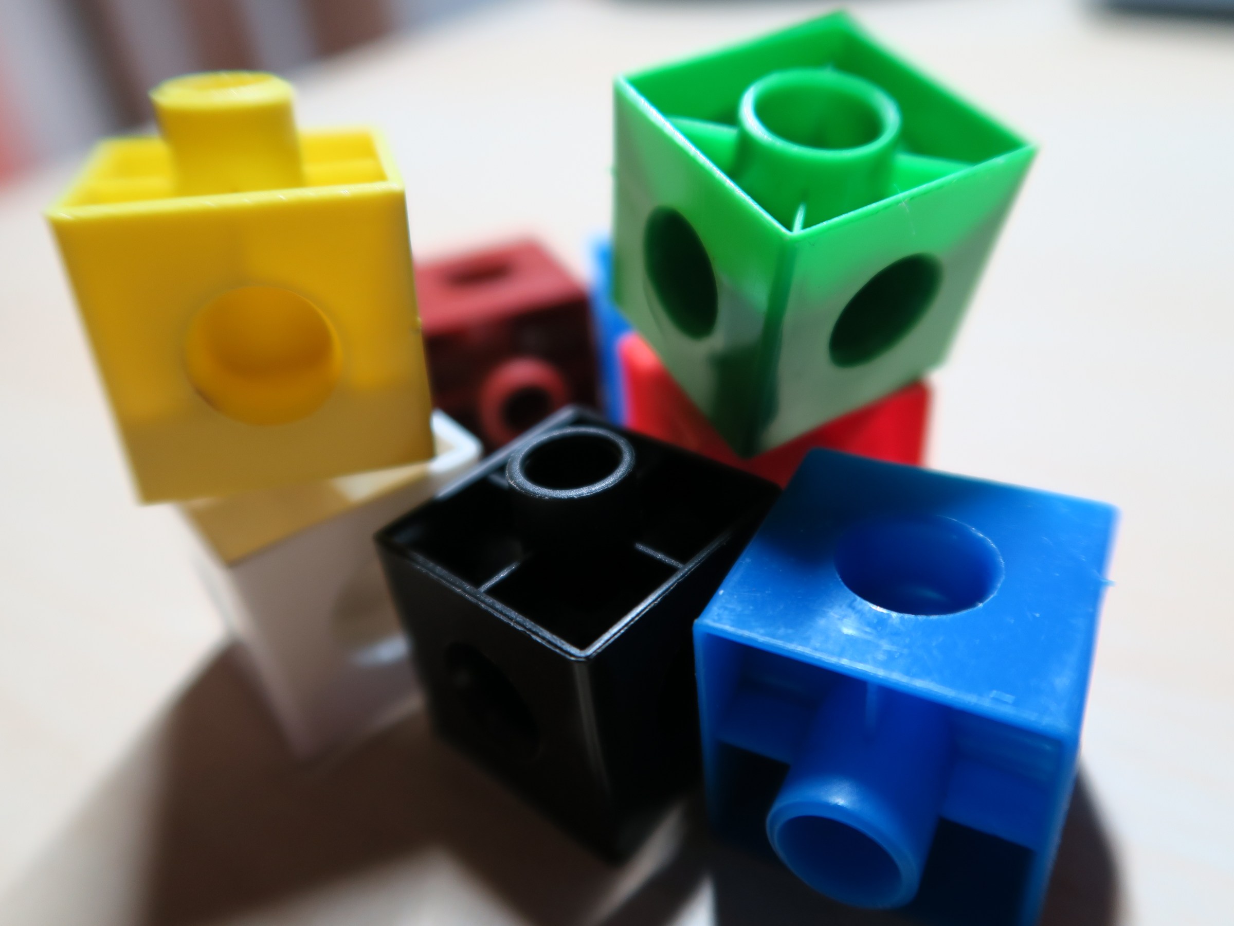 I taught the children key mathematical concepts using ‘concrete’ materials, such as multi-link cubes and a simple vocabulary. In a supportive environment, the children became good at using these tools. Consequently, they went on to further developing their skills in a pictorial form. Ultimately, they were able to work confidently and with good understanding in abstract mathematical forms.